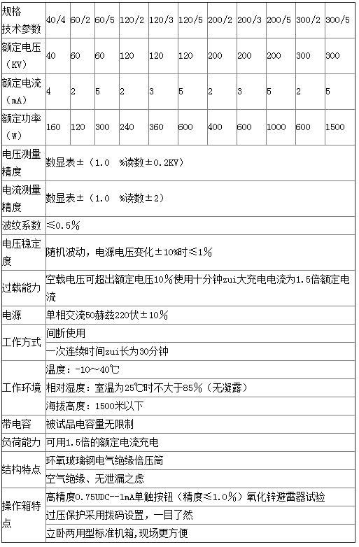 直流高壓發(fā)生器的參數(shù)
